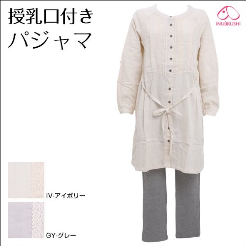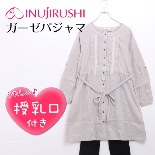 犬印 INUJIRUSHI Wガーゼパジャマ(授乳口付き)(GY-グレー、ML)