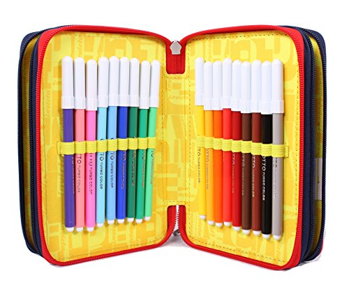 鉛筆バッグInvicta – Mix – ブルー – フェルトパステルヒントECC。。学校学生