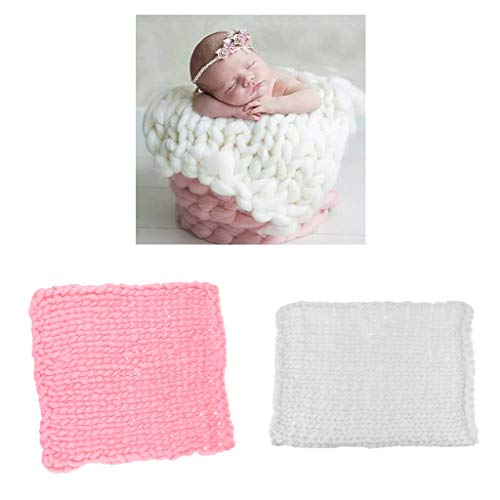 IPOTCH 2枚セット 新生児 編み ブランケット 布団 寝具 毛布 写真 小道具