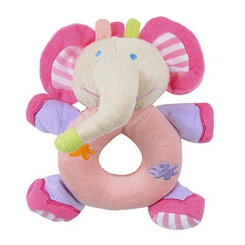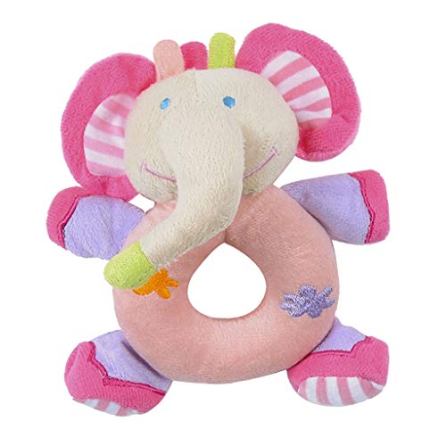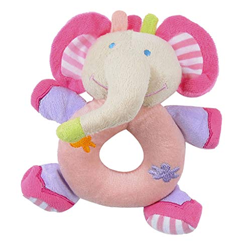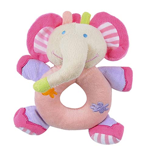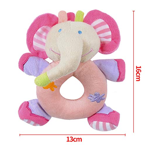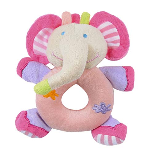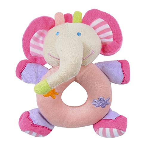 IPOTCH ぬいぐるみラトル ベビー がらがら おもちゃ 動物形のぬいぐるみ 布のおもちゃ 全6種 - ピンクの象