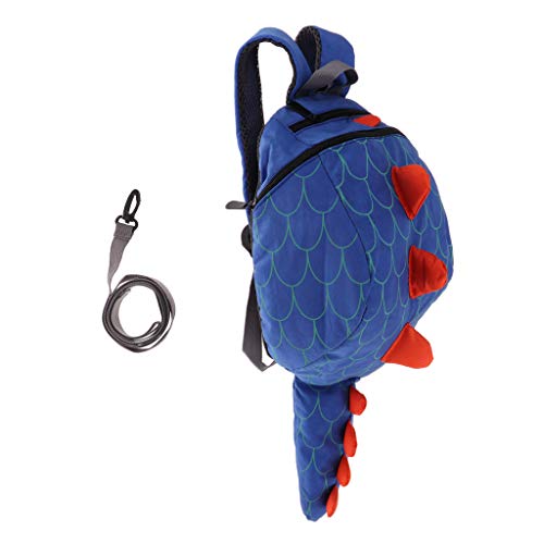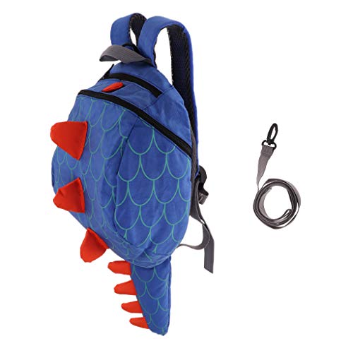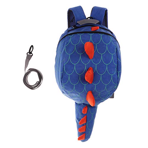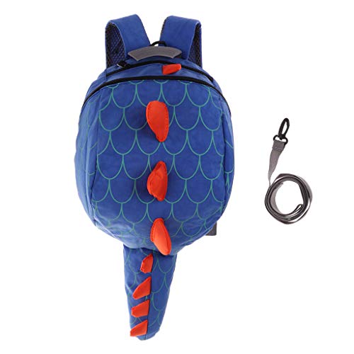 IPOTCH 子供 バックパック 迷子防止ひも リード付き リュックバッグ 可愛い 恐竜の形 バッグ 全4種 - 青
