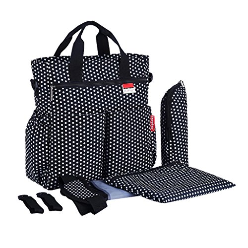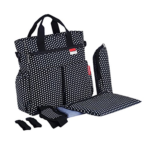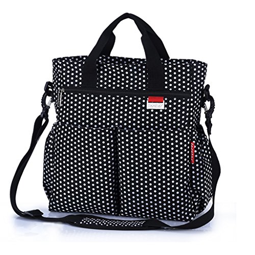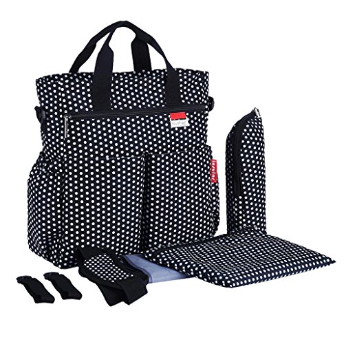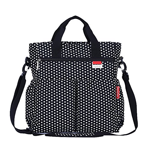 IPOTCH 全3色 マザーズバッグ ママバッグ おむつバッグ ショルダーバッグ 哺乳瓶ケース 旅行 - ブラックドット
