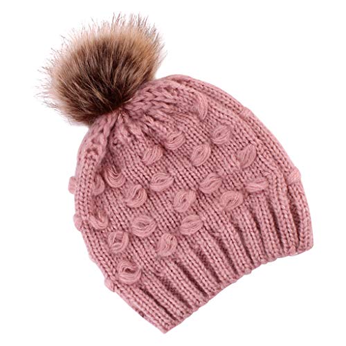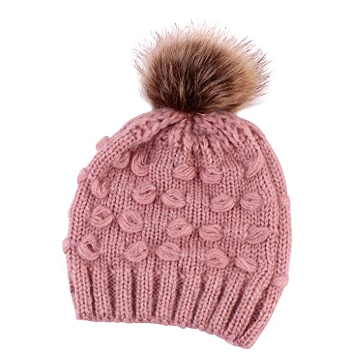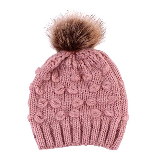 IPOTCH 全5色 ベビー 幼児 暖かい 帽子 ニットビーニー ボール キャップ 冬 秋 - ピンク