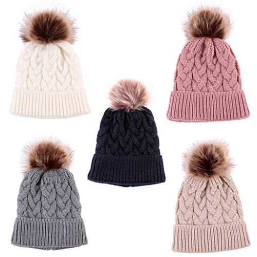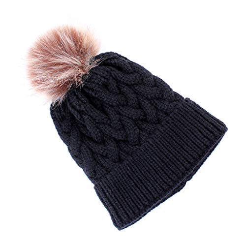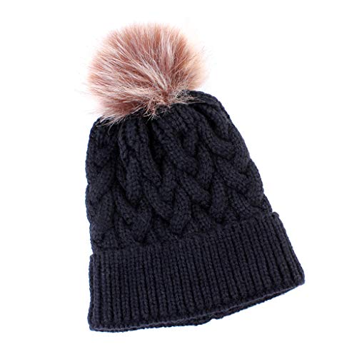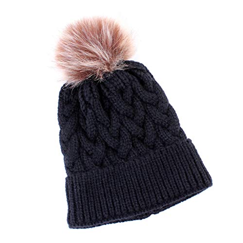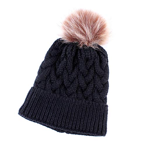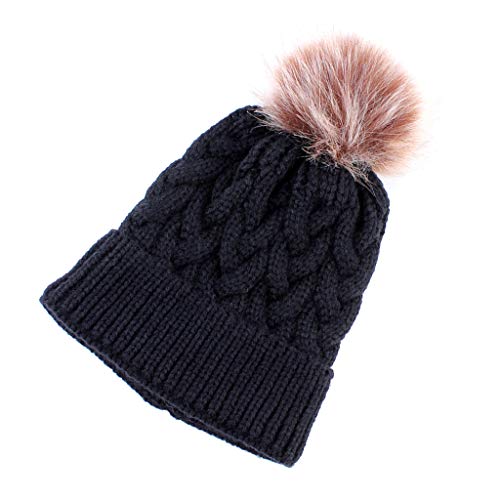 IPOTCH 子供 ニット帽 ニットキャップ ニット帽子 ボンボン付き 冬 暖かい 柔らかい 全5色 - ブラック