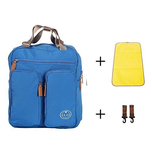 マザーズバッグ 軽量 大容量 多機能 ママバッグ ショルダーバッグ ベビーカー用フック付き おむつ替え用防水シート付き 収納 (ブルー)
