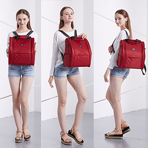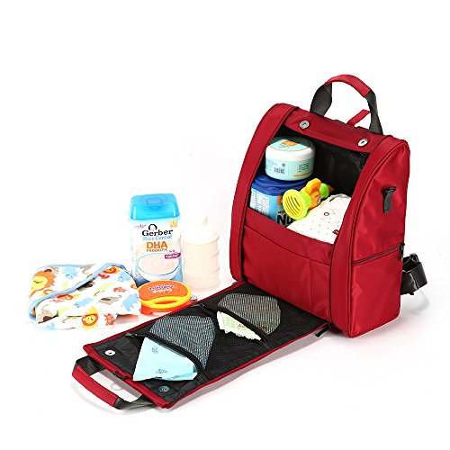マザーズバッグ 軽量 大容量 ミニポーチ付き 多機能 ママバッグ ショルダーバッグ ベビーカー用フック付き 収納 (ワインレッド)