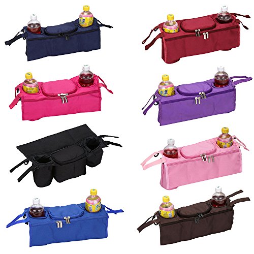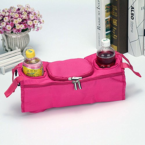 ベビーカー用 バッグ マザーズバッグ 収納 多機能 小物入れ ポケット (ローズレッド)