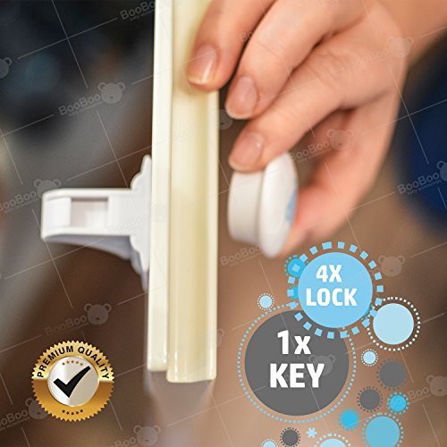 BooBoo Child/ Baby Safety Cupboard Locks (4 Locks 1 Key) Baby Proof Your Cabinets & Drawers With The Invisible Magnetic Adhesive Lock, Extra Easy Install, No Tools Needed! by BooBoo