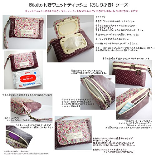 - ビタットを付けたハンドメイドのウェットティッシュ(おしりふき)ケースです。背面にポケットがひとつあります(ポケット内側は撥水性のナイロンです)。