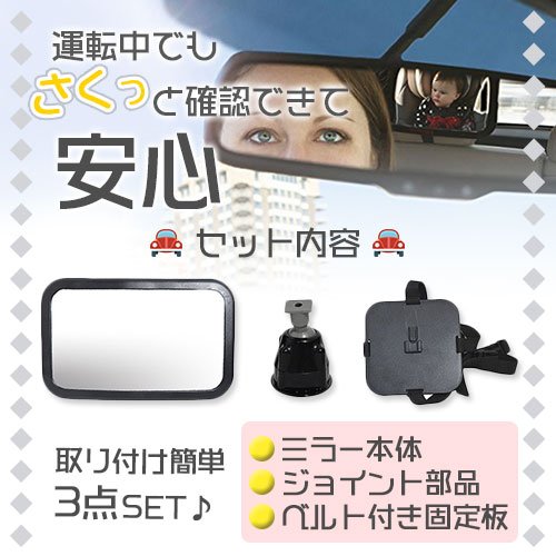 - 後部座席に座っている、赤ちゃんや、ワンちゃんなどをさくっと確認できる便利アイテム!