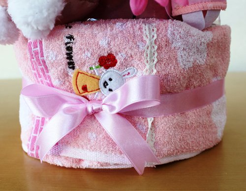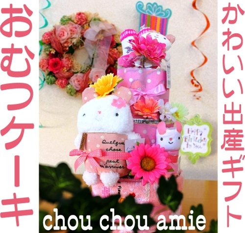 - とってもかわいいシュシュアミーのおむつケーキ!ピンクでまとめたおむつケーキは女の子におススメ♪高さは約48cmとインパクト大!