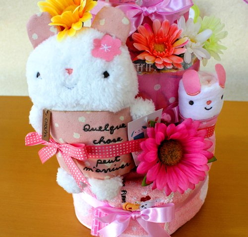 ぬいぐるみとおむつケーキの出産祝い・出産ギフト女の子にお勧めの出産祝い