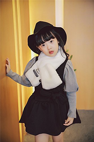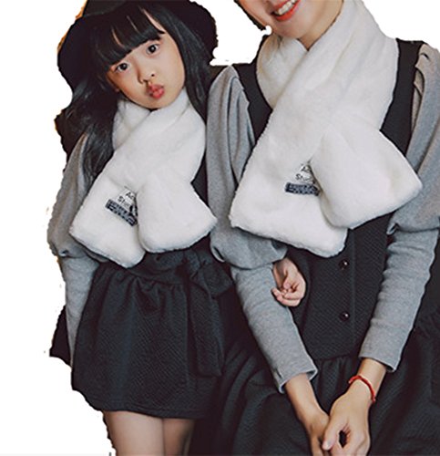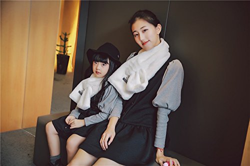 IWELY フワフワ 親子マフラー 二点セット キッズマフラー 女の子 柔らかい 純色厚手 秋冬 防寒可愛いスカーフ (白)