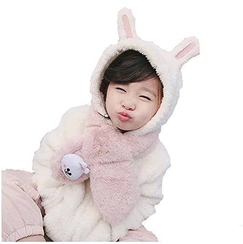 IWELY フワフワ子供用マフラー ネコちゃん くまちゃん アヒルちゃん可愛いマフラー 保温防寒対策 (ピンク)