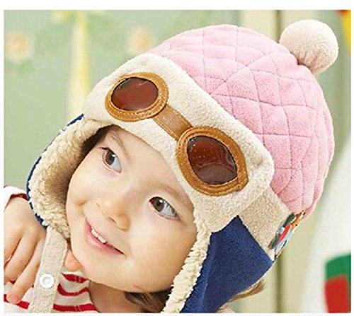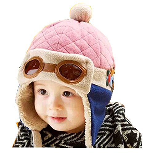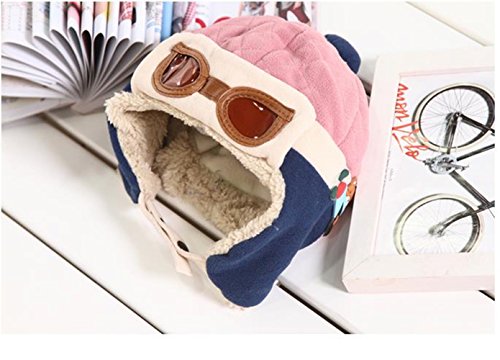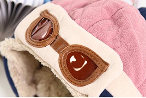IWELY 子供 キッズ用 ベビー用帽子 ニット 秋冬 厚手 寒さ対策 可愛いパイロット帽 耳あて 防寒 防風 4色 (ピンク)