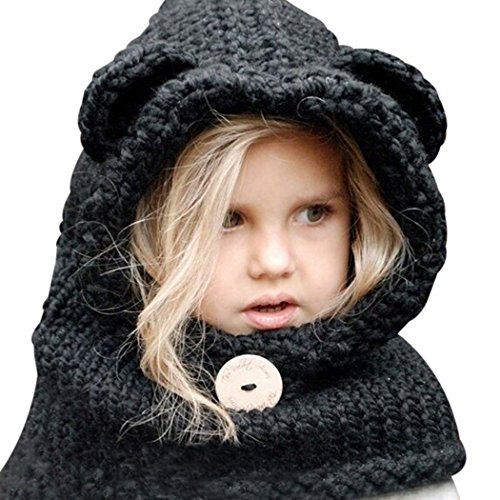 IWELY ネックウォーマー ニット 帽子 耳付き ベビー キッズ 子供用 小熊 かわいい 防寒 あったかアイテム カジュアル 男女兼用