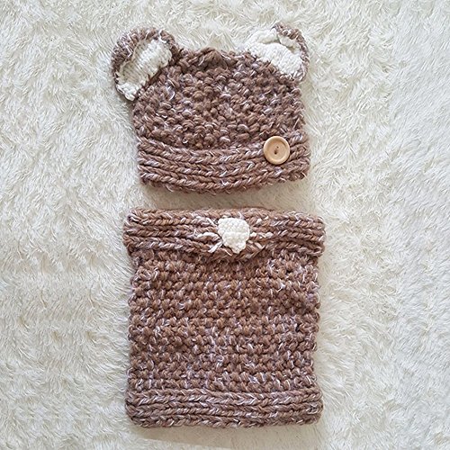 IWELY ベビー キッズ 子供用 ニット 帽子 耳付き ネックウォーマー かわいい 防寒 あったかアイテム カジュアル 男女兼用 (ベージュ)