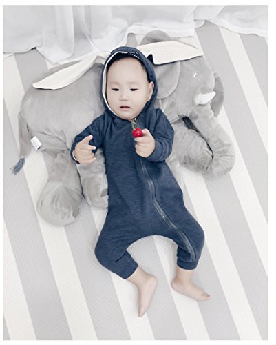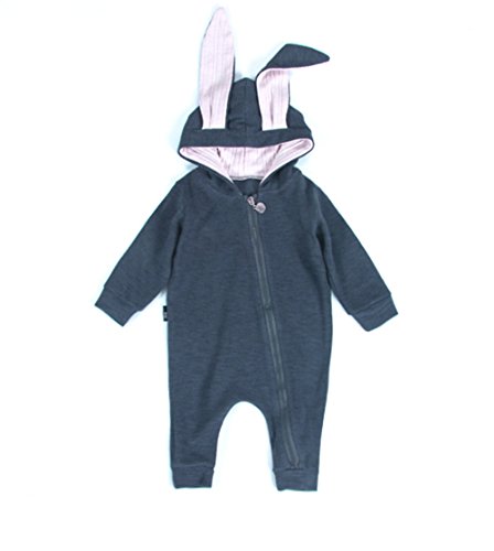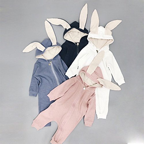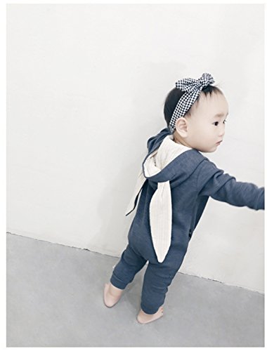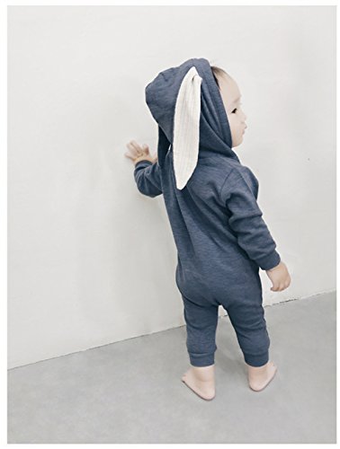 IWELY ベビー 女の子 男の子 長袖 うさぎ耳 ロンパース カバーオール 赤ちゃん 出産祝い 子供服 ジャンプスーツ カジュアル おしゃれ (紺色, 100cm)