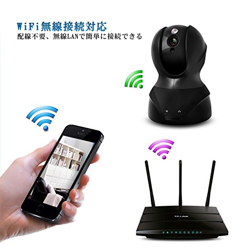 監視カメラ720P200メガピクセルのHDカメラ、昼も夜もIPカメラ無線WIFIリンクデュアルボイスデュアルビデオ動き検出ベビーモニターネットワークリモコンAPP (ブラック)