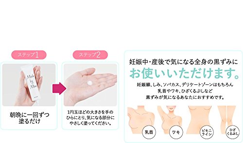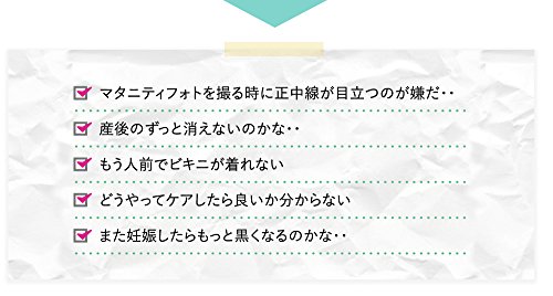 メイドバイマム正中線クリームなら塗るだけで簡単にケアできるので忙しいママの味方。正中線とは、おへその上下に出来る茶色っぽい線。妊娠線とは異なり痛みや痒みもありません。妊娠するとホルモンバランスの変化によりメラニン色素を蓄積しやすくなるため、本来は目立たない正中線がくっきり見えるようになります。妊娠中はシミやそばかすが増えたり、乳首や外陰部などが黒ずんだりするのと同じ理由です。グリチルリチン酸2Kを配合。2つの薬用成分で黒ずみをケアし、きれいな肌をサポートします。黒ずみの原因となるメラニンの生成を抑える4種類の植物成分を配合。メラニンを元から分解し、黒ずみの原因へ ダイレクトにアプローチするのでデリケートゾーンを理想的な状態に整え、健康な肌サイクルを導きます。8種類もの保湿成分が配合されています。この保湿成分がデリケートゾーンに潤いを与え、しっかりと保湿。デリケートゾーンを理想的な状態に保ちます。 【有効成分】トラネキサム酸 グリチルリチン酸ジカリウム 【その他の成分】ヒアルロン酸ナトリウム(2) シロキクラゲ多糖体 ローズ水 乳酸ナトリウム液 オウゴンエキスシクロヘキサンジカルボン酸ビスエトキシジグリコール サクラ葉抽出液 カモミラエキス(1) ダイズエキス メチルフェニルポリシロキサン 1,3-ブチレングリコール ポリアクリル酸アミド 1,2-ペンタンジオール 軽質流動イソパラフィン グリセリンモノ2-エチルヘキシルエーテル グリセリン脂肪酸エステル グリセリン 1,2-ヘキサンジオール ポリオキシエチレンラウリルエーテル(7E.O.)エデト酸二ナトリウム フェノキシエタノール 精製水