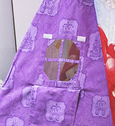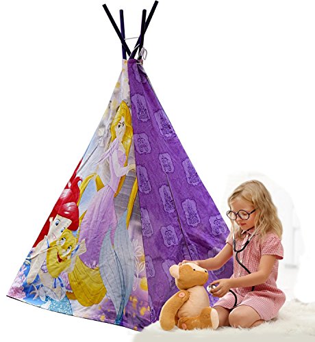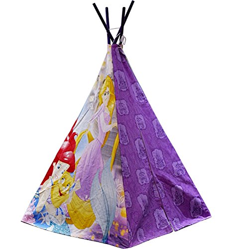 Take your child's imagination to the next level with the Disney Princess Play Tent. It is a fun and playful way to brighten the decor of any room. Perfect for any fan of Ariel and Rapunzel. The play tent is easy to assemble with wood poles and cotton fabrication. Recommended for children of 3-8 years of age. Spot clean only. For indoor use only. Dimensions: 47.25" W x 47.25" W x 63" H.