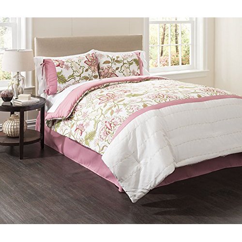 Modernize your bedroom with the colorful florals with white drop of the Margate comforter set. The 4 piece set includes comforter, bed skirt, and two pillow shams. Machine wash - gentle cycle. 100% polyester.