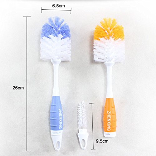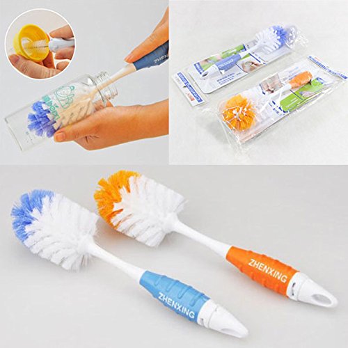 Idealhereベビー用品 哺乳びん ブラシ 哺乳びんと乳首の洗浄セット ガラスびん用専用ブラシ (オレンジ)