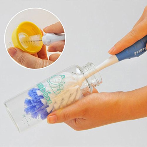 Idealhereベビー用品 哺乳びん ブラシ 哺乳びんと乳首の洗浄セット ガラスびん用専用ブラシ (ブルー)