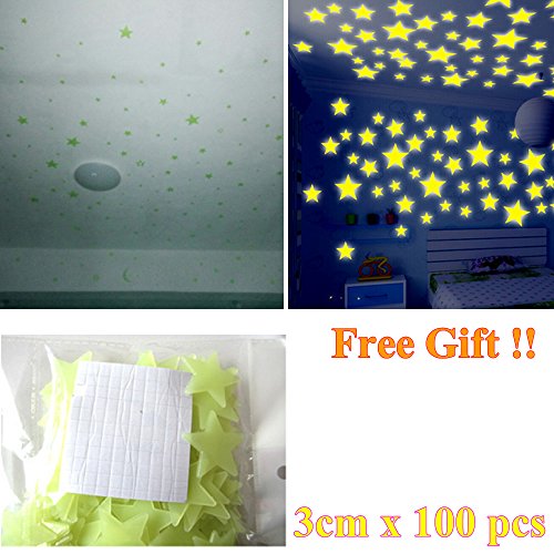 1 x 100個3 cm発光する星の壁のステッカー(送付して、無料ギフト)
