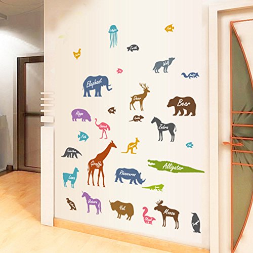 動物壁デカールカラフルなベッドルーム壁装飾キッズ子供部屋ウォールステッカー鹿30 Elephant Giraffe Jellyfish