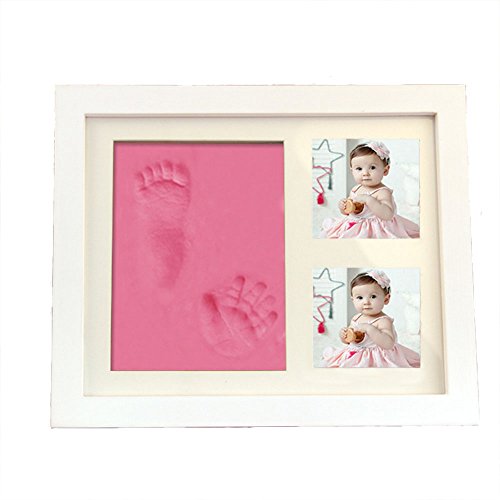 JpGdn ベビー写真フレーム 手形足形フォトフレーム 写真立て 無毒で安全の粘土 赤ちゃん出産祝いギフト ベビー記念品 木製 男女通用 セット1個 レット