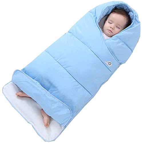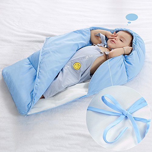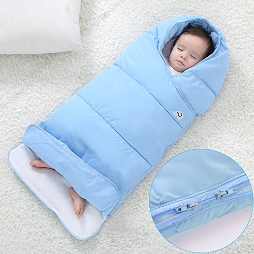 Ihoven 赤ちゃん 寝袋 スリーパー おくるみ 春秋冬用 新生児/子供/キッズ用 ベビー用品 寝冷え防止 風邪予防 スリーピングバッグ 封筒型 布団 丸洗いできる ポーラーフリース ふわふわ 耐寒 軽量 シーズンレス 出産祝い ベビーカーに固定可能 1人用 (0歳~1歳) ブルー