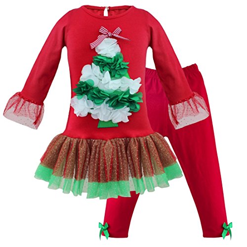 - シフォンのクリスマスツリーと蝶結び目のアップリケ、脚の開口部にちょう結びを付けたズボン。