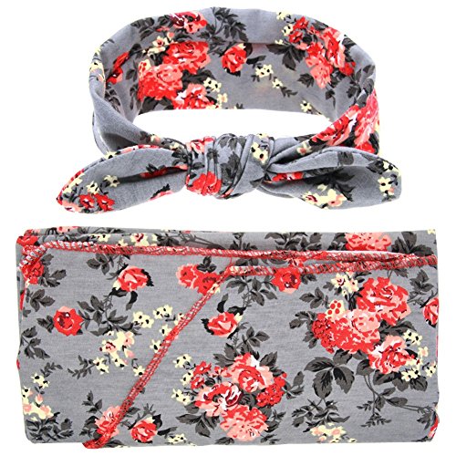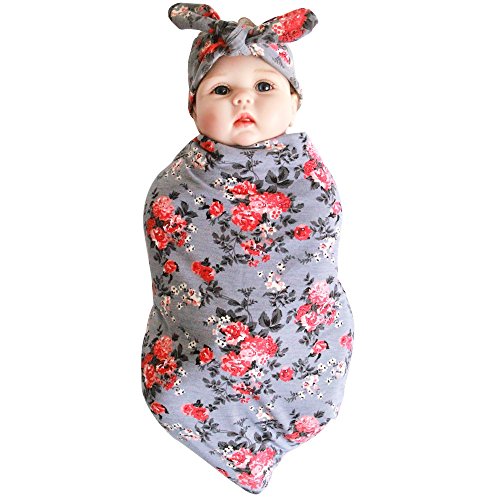 (アイム)iiniim ベビー ラップ 赤ちゃん フリース 寝袋 おくるみ ブランケット 新生児 着る毛布 コットン 暖かい 睡眠袋 幼児 花柄 ヘッドバンド付 3色 グレー ワンサイズ