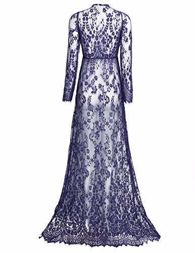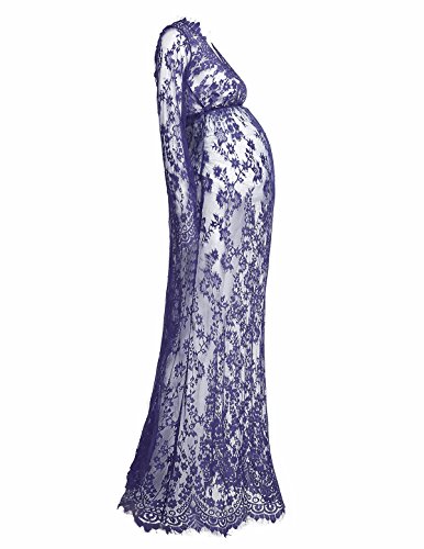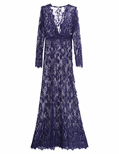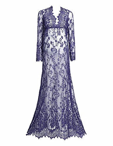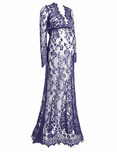 (アイム)iiniim レディース マタニティ 授乳ワンピース 妊婦服 産前 産後 レース ロングドレス 授乳服 シースルー Vネック マキシ 写真用 撮影道具 ネービーブルー M