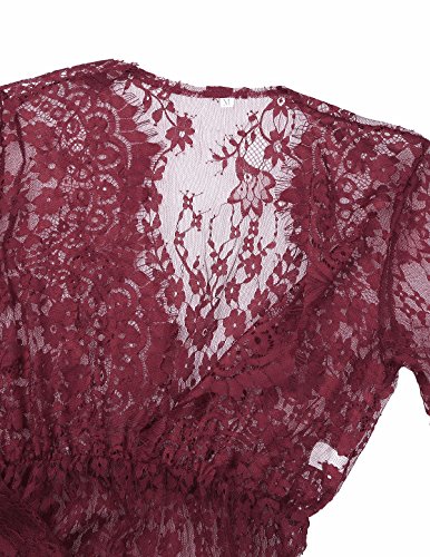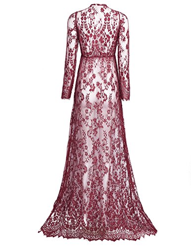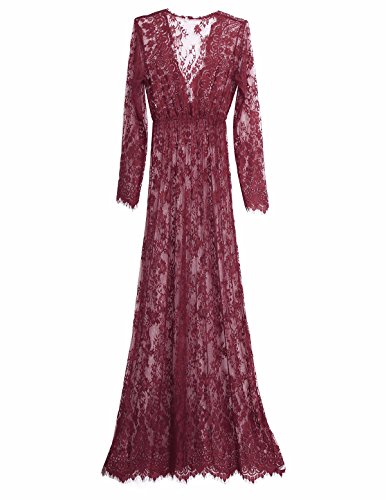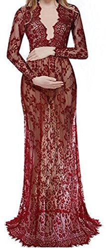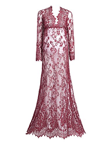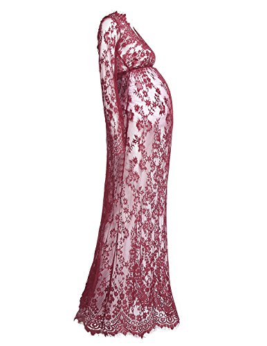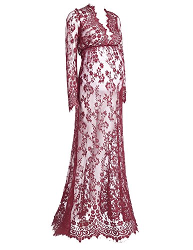 (アイム)iiniim レディース マタニティ 授乳ワンピース 妊婦服 産前 産後 レース ロングドレス 授乳服 シースルー Vネック マキシ 写真用 撮影道具 ワインレッド L