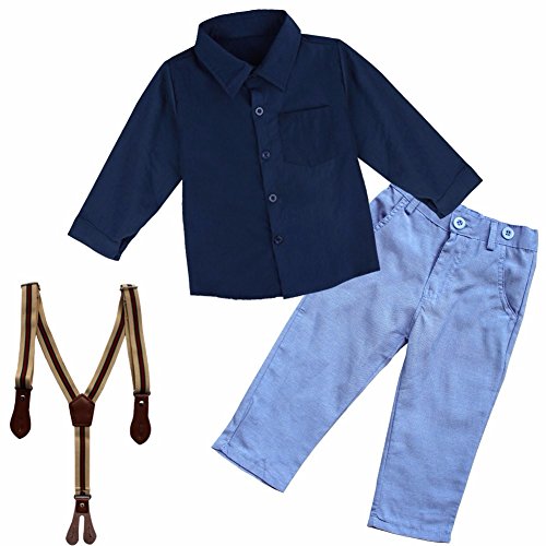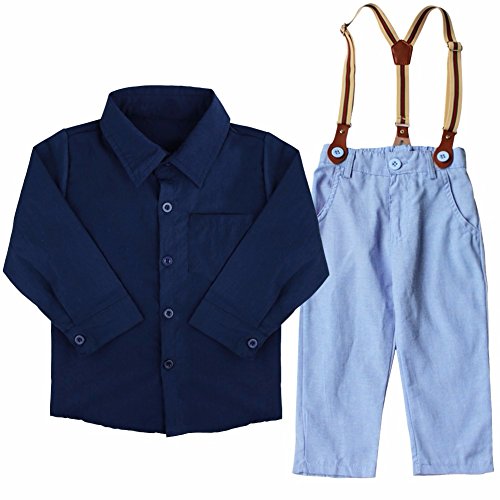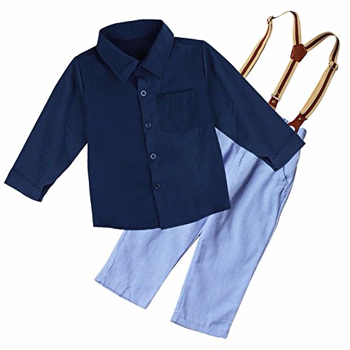 (アイム)iiniim 男の子紳士シャツよだれかけ パンツ+シャツ+ストラップ3点セット ロンパース スーツ ズボン 男の子コート ベビーカバーオールフェイクレイヤー新生児入学式 シャツ 1?5才 ブルー #120