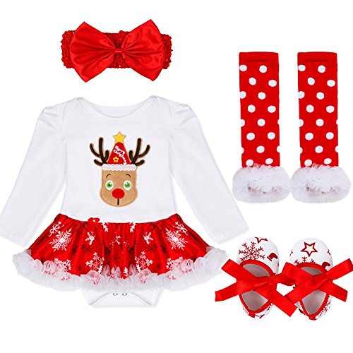 (アイム)iiniim 赤ちゃん クリスマス ロンパース チュチュスカート 長袖 キッズ服 祭り 誕生日 プレゼント 聖夜 イブ ベビー ロンパース 可愛い コスチューム 着ぐるみ 衣装 新生児用 おくるみ 記念写真小道具 チュチュ ふわふわ お食い初め 記念撮影 寝相アート 4点セット タイプ-1 タグ:S 推薦年齢:3-6ヶ月