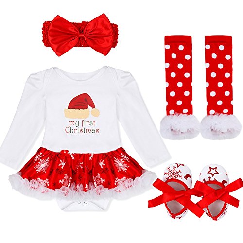(アイム)iiniim 赤ちゃん クリスマス ロンパース チュチュスカート 長袖 キッズ服 祭り 誕生日 プレゼント 聖夜 イブ ベビー ロンパース 可愛い コスチューム 着ぐるみ 衣装 新生児用 おくるみ 記念写真小道具 チュチュ ふわふわ お食い初め 記念撮影 寝相アート 4点セット タイプ-4 タグ:S 推薦年齢:3-6ヶ月