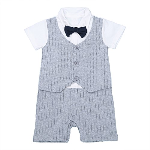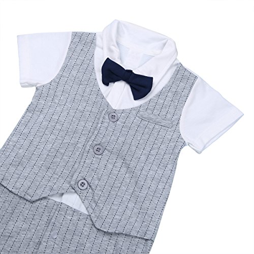 (アイム)iiniim ベビー 連体 ロンパース 短袖 フォーマル 子供服 カバーオール ベビースーツ ボーイズ 紳士 蝶ネクタイ 新生児 シャツ グレー 80