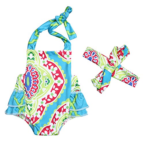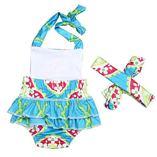 (アイム)iiniim 新生児 ベビー ロンパース ヘッドバンド2点セット 花チェリープリント フリル 連体服 キャミソール プレゼント 出産祝い バックレス 2点セット 90 推薦年齢:6-9月