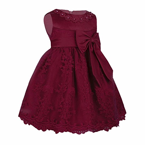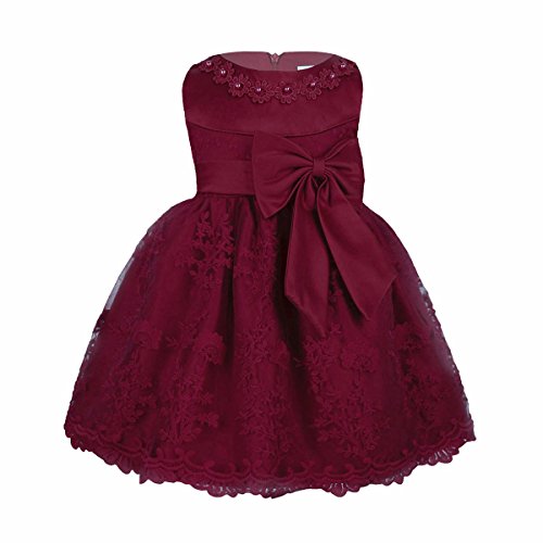 (アイム)iiniim ベビー パーティー フレアワンピース キッズ用 誕生日 ドレス フォーマル ノースリーブ リボン飾り 蝶結び ワンピース チュチュ 正式 百日祝い 発表会 プリンセス ワインレッド タグ:12M 推薦年齢:12-18ヶ月