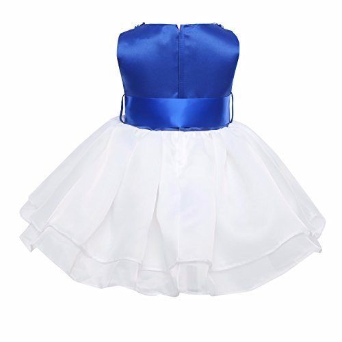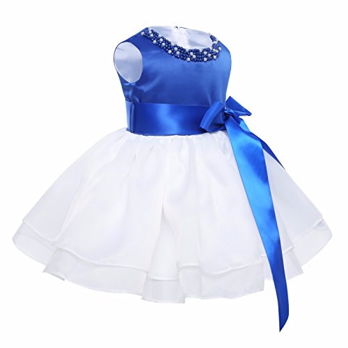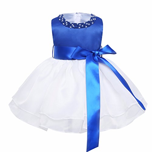 (アイム)iiniim ガールズ パーティー フレアワンピース ベビー 結婚式 フワフワ ドレス フォーマル ノースリーブ ネック パープル リボン飾り ミモレ お姫様 ロングドレス ワンピース チュチュ 正式 披露宴 発表会 プリンセス キッズ服 誕生日 プレゼント ブルー タグ:80 推薦年齢:18-24ヶ月