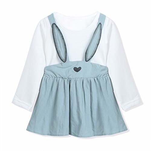 (アイム)iiniim ベビー ガールズ スカート キャミ型 ウサギ耳 ロングスリーブ 秋冬服 子供服 キッズ ドレス 女の子 カジュアル ワンピース ライトブルー タグ:9 推薦年齢:6-9ヶ月
