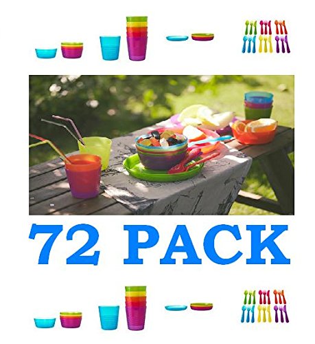 Ikea 72Pcs Kalas Kids Plastic BPA Free Flatware, Bowl, Plate, Tumbler Set, Colorful (72 Piece) by IKEA