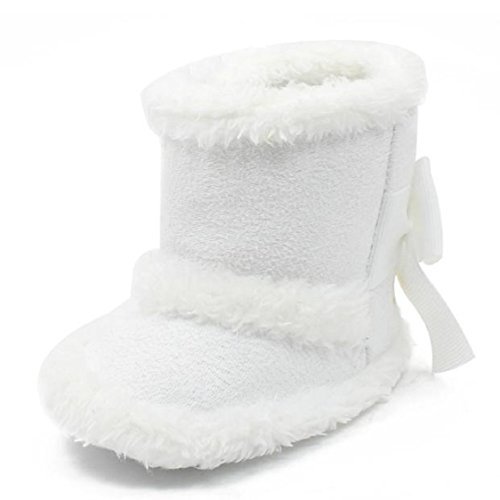 ikevanクリスマスベビー女の子男の子ソフトソール雪ブーツソフトベビーベッドシューズ幼児ブーツ滑り止めPrewalkerシューズ幼児用ブーツ暖かい冬0 – 18ヶ月 カラー: ホワイト