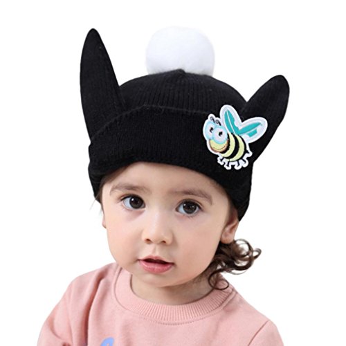 ikevanベビーキッズキュートな長い耳帽子ニットウールキャップ帽子ビーニー暖かい帽子 44-52CM/17.3"-20.5" ブラック IPET65222333625