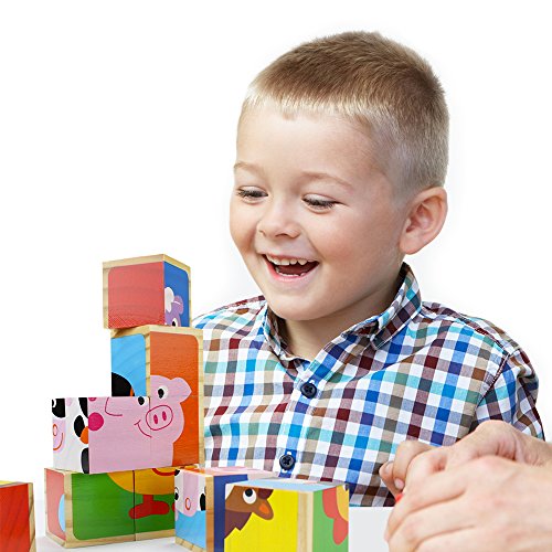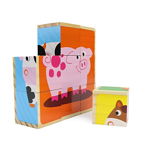 教授Poplar 's Barnyard動物Stackingパズルブロック、9ピース