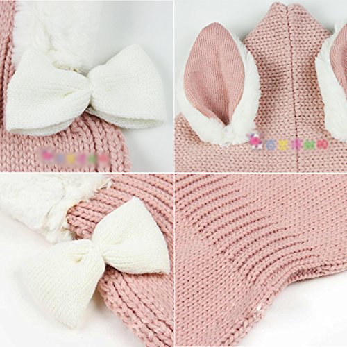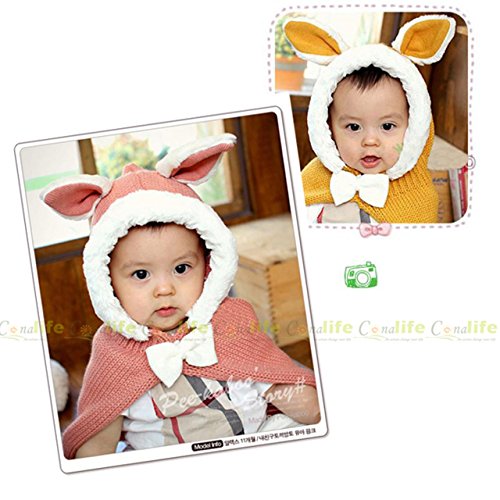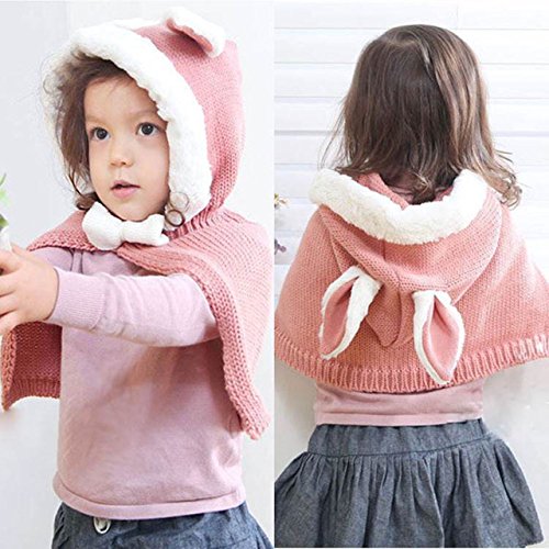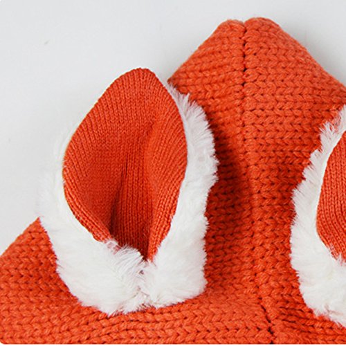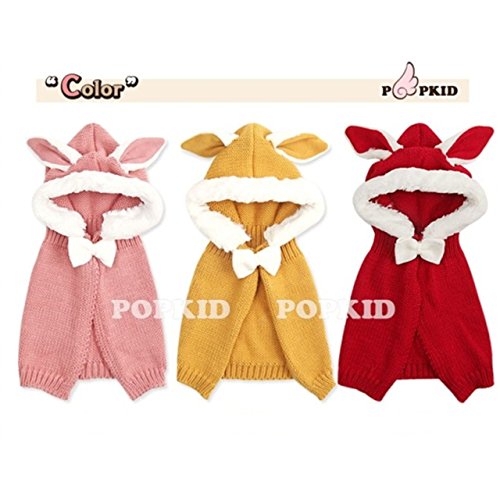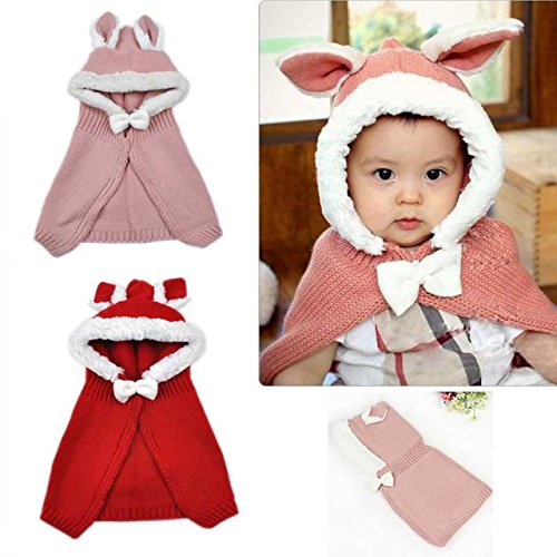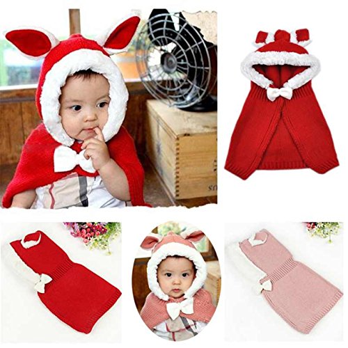 ウサ耳フードつきマント うさぎ耳 ラビット Rabbit Ear 赤ちゃん ベビー ニット 帽子 ニット帽 Hat 冬用 マントつき ポンチョ ショールマント (Red(レッド))