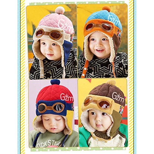 パイロット 帽子 飛行帽 パイロット帽子 子供用 ベビー キッズ 耳あて付き帽子 あったか ボアつき ゴーグル飾りつき 新色追加 2016年新作 (Red(レッド))